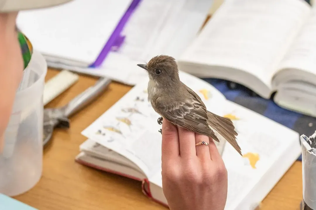 The Eastern Phoebe is recognized by observers partly due to its signature mannerism: a gentle, metronomic tail-wagging action while it is perched.
