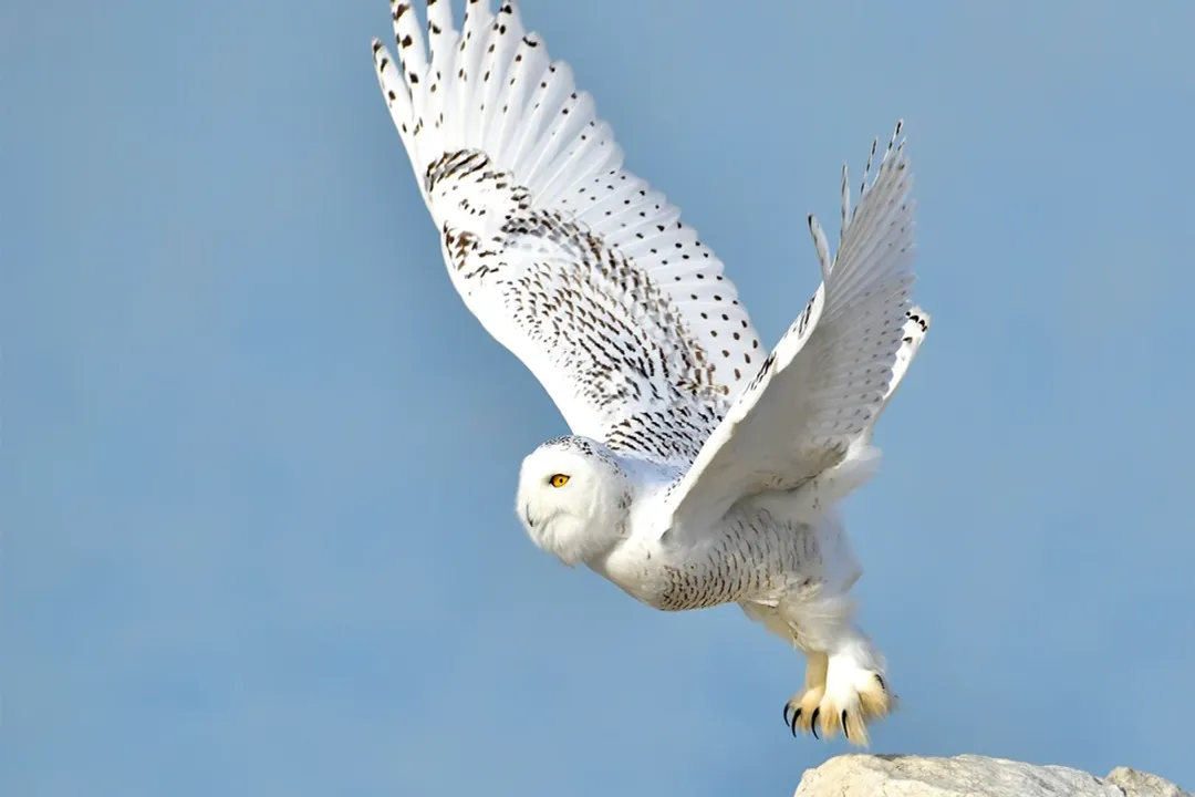 What is the primary staple prey for Snowy Owls during the breeding season in their native tundra environment?What type of prey dominates the diet of Snowy Owls when they winter along coastal areas?Which two specific goose species were identified among the prey remains of Snowy Owls wintering near Logan Airport?How do Snowy Owls typically consume prey items as substantial as geese?In terms of energy yield, how does consuming a single adult goose compare to consuming lemmings for an owl?Which other bird family's open-country hunting strategy is mentioned as similar to the Snowy Owl's initial approach involving sitting immobile on a perch?What ecological role do Snowy Owls contribute to by including geese in their winter diet?What characteristic distinguishes the female Snowy Owl in terms of size compared to the male?When Snowy Owls winter inland on prairies or agricultural fields, what types of small rodents dominate their diet?What fact confirms the Snowy Owl's opportunistic nature regarding the sheer volume of potential food sources?