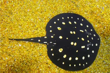 As the ray matures, the nature of these spots evolves. Young individuals tend to display a more basic black, white, or gray pattern, with the distinct blotching developing over time. [3] In adults, the solid white spots often transition into circles, which can eventually break apart into clusters of irregular white flecks. While the spots are widely spaced, they are densely distributed across the disc. Interestingly, some individuals may also exhibit splashes of yellow or orange coloration near the forehead. Towards the disc margin, the spots generally become smaller.